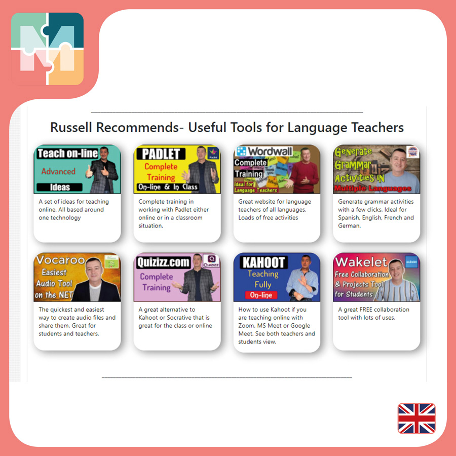 This website contains a collection of teachers training videos with a broad variety of topics, such us the use of pedagogical tools and digital teaching approaches and methodologies. GO TO COURSE